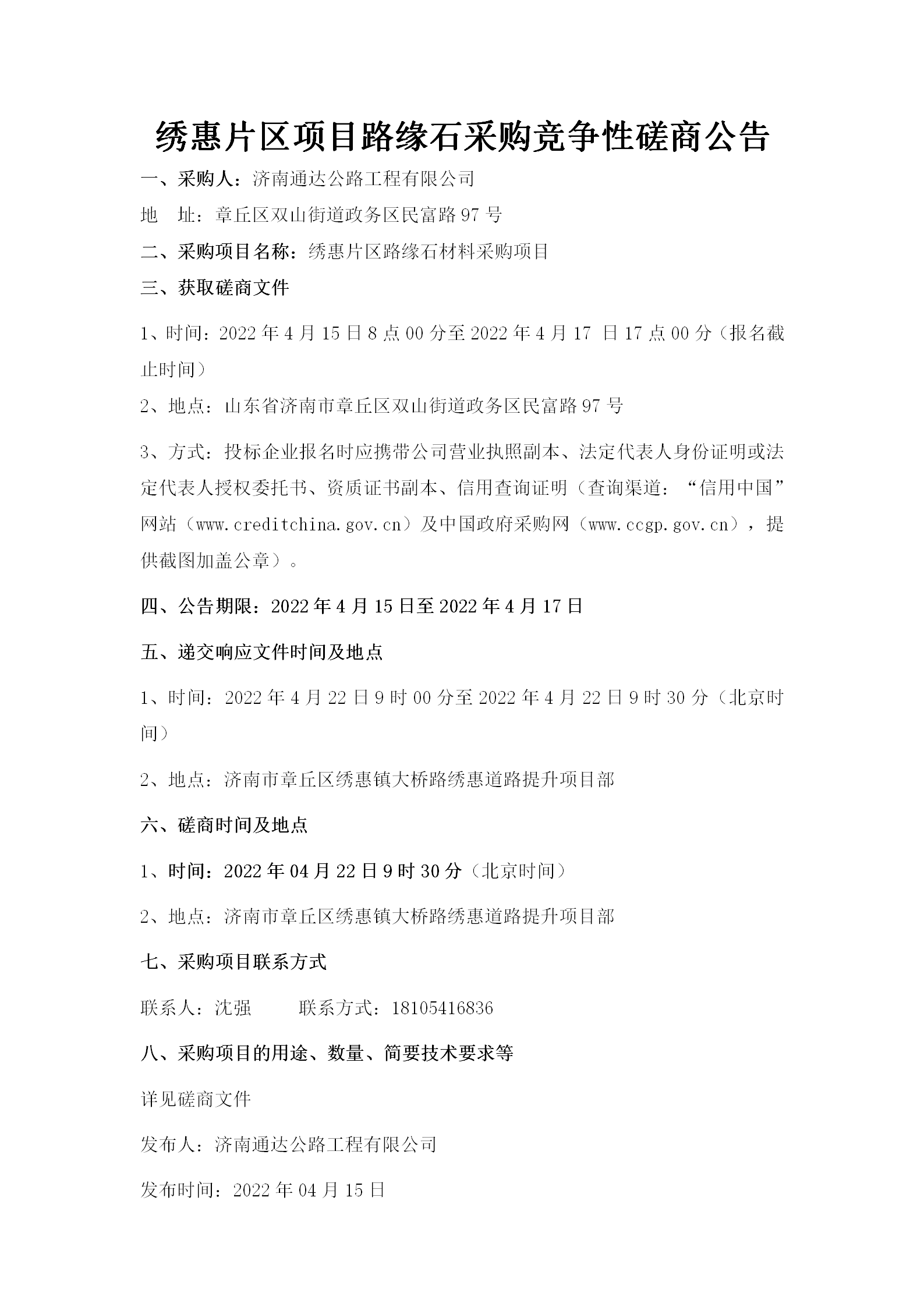 繡惠片區(qū)項目路緣石采購競爭性磋商公告
