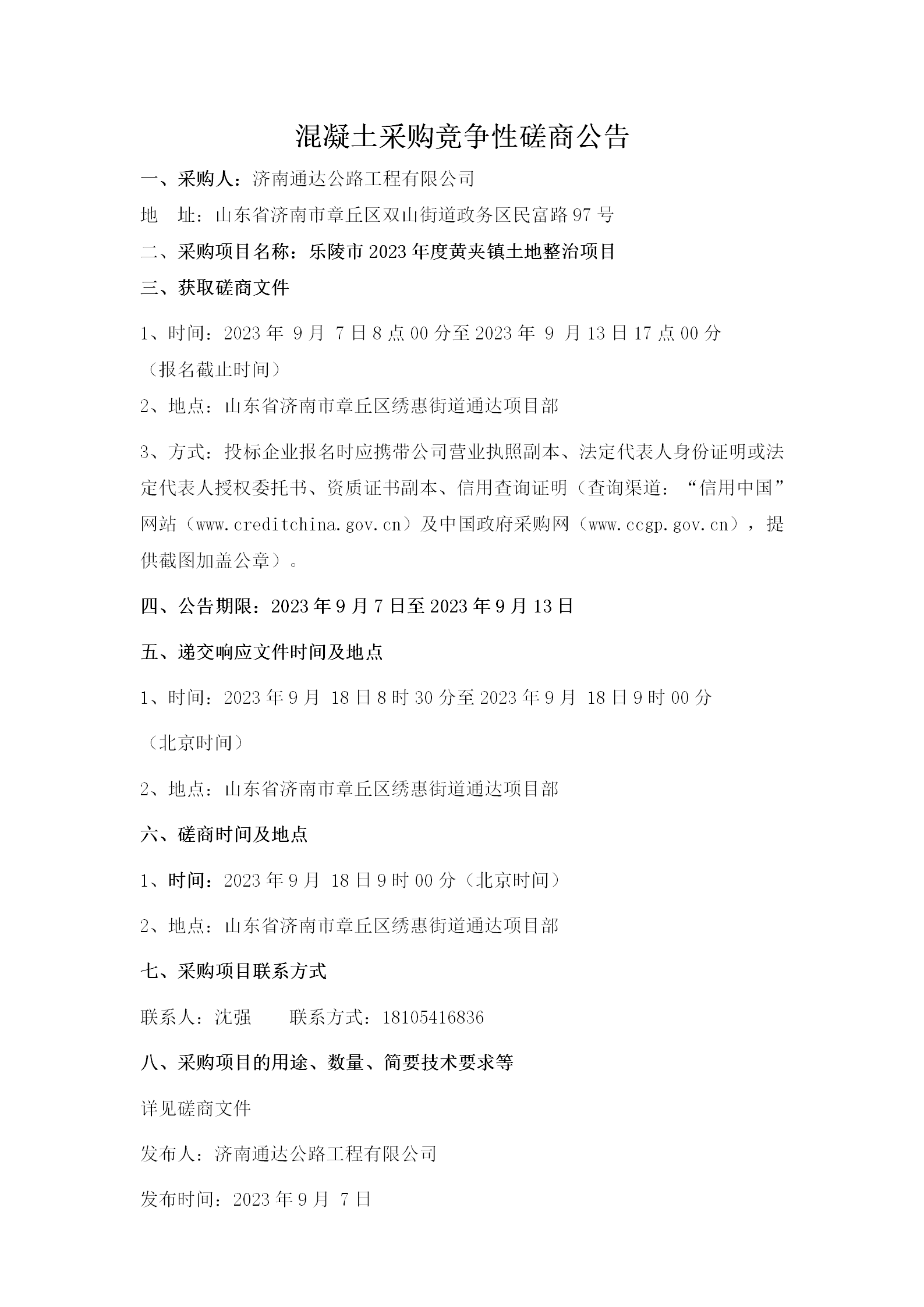 濟(jì)南通達(dá)公路工程有限公司 繡惠街道駐地市政管網(wǎng)基礎(chǔ)設(shè)施提升改造一期EPC項目排水工程棄方運(yùn)輸勞務(wù)分包成交結(jié)果公示