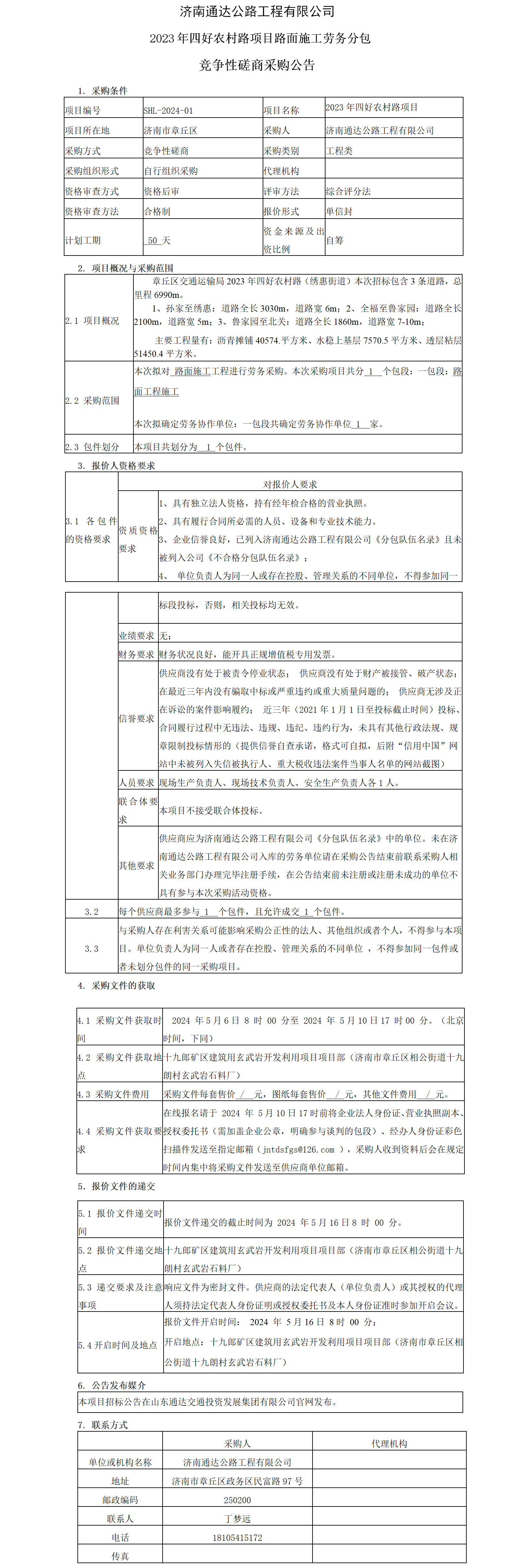 濟南通達公路工程有限公司 2023年四好農村路項目路面施工勞務分包 競爭性磋商采購公告