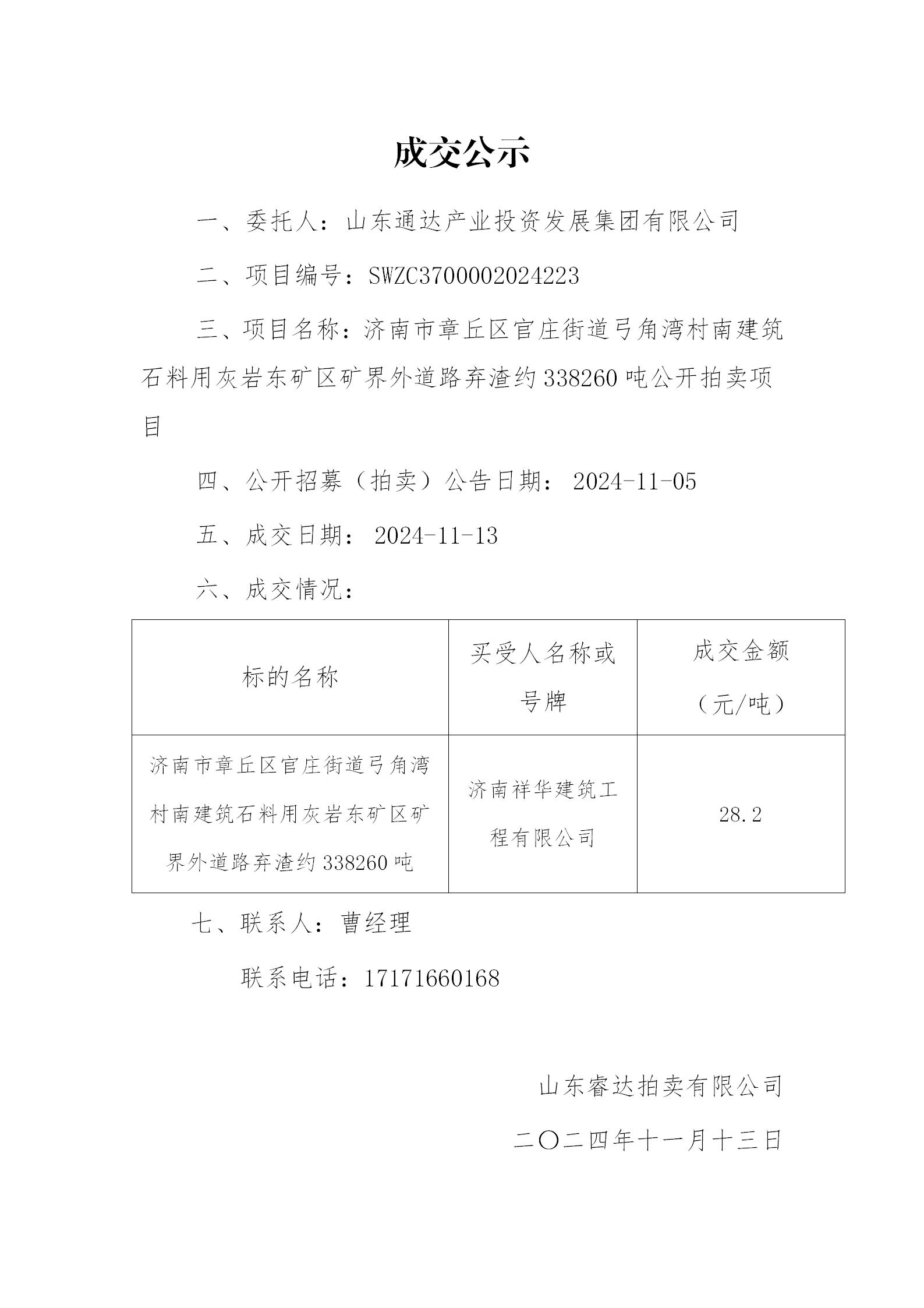 濟南通達公路工程有限公司 S241臨徐線章丘區(qū)長青村南至章丘萊蕪界段路面改造工程SG-10標段缺陷責(zé)任期維修分包 競爭性磋商結(jié)果公示