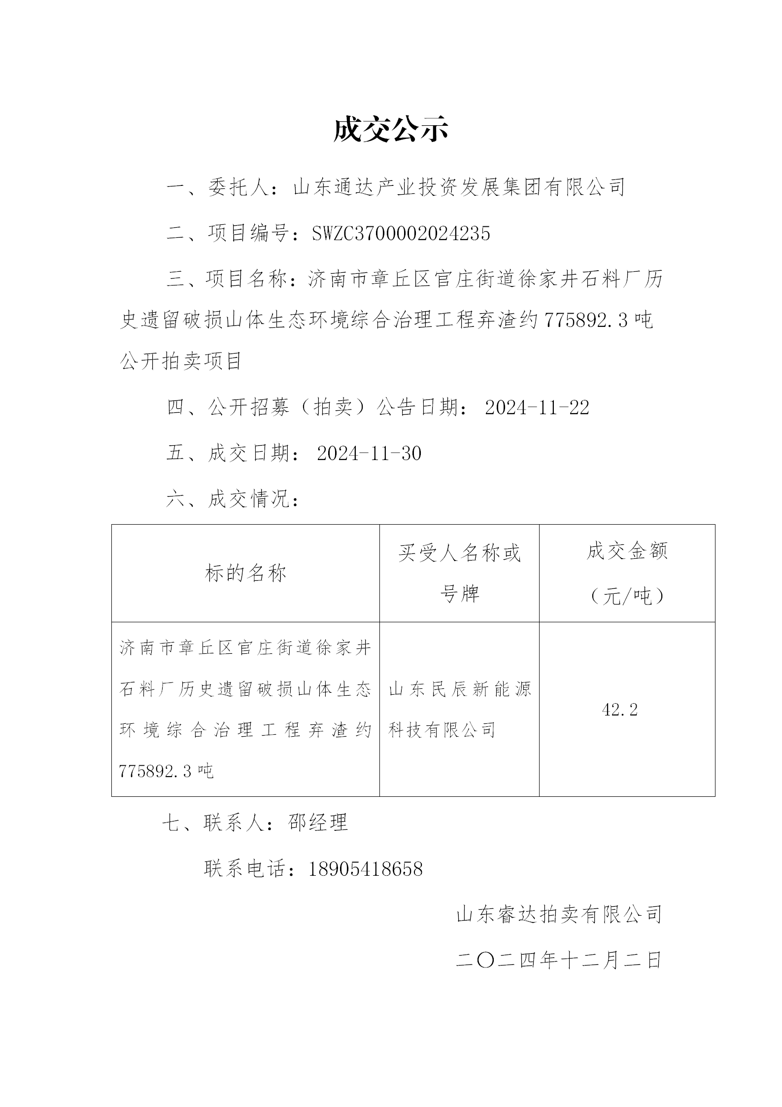 濟(jì)南市章丘區(qū)官莊街道徐家井石料廠歷史遺留破損山體生態(tài)環(huán)境綜合治理工程棄渣約775892.3噸公開拍賣項(xiàng)目