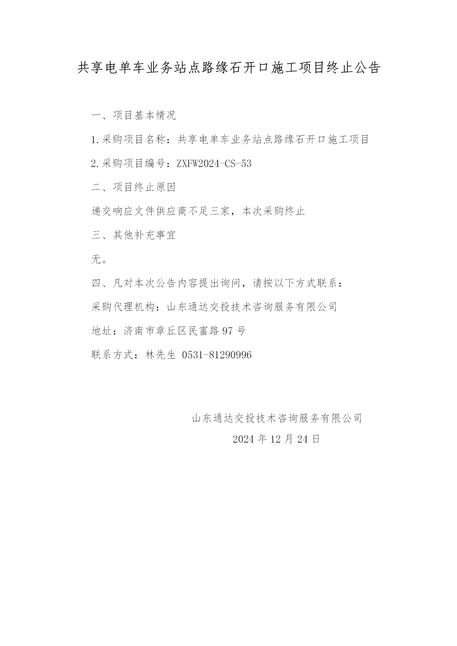 共享電單車(chē)業(yè)務(wù)站點(diǎn)路緣石開(kāi)口施工項(xiàng)目終止公告